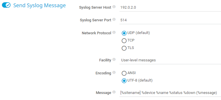 Define the message of the MQTT publish notifications. The default message is PRTG - [%sitename] %device %name %status %down (%message).